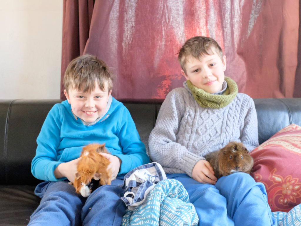 We kochten ze bij Stichting Cavia in Bakkeveen. Aan hun onderkomen wordt gewerkt door Terrariumhuis, en tot hun hut af is logeren ze op de eetkamertafel.