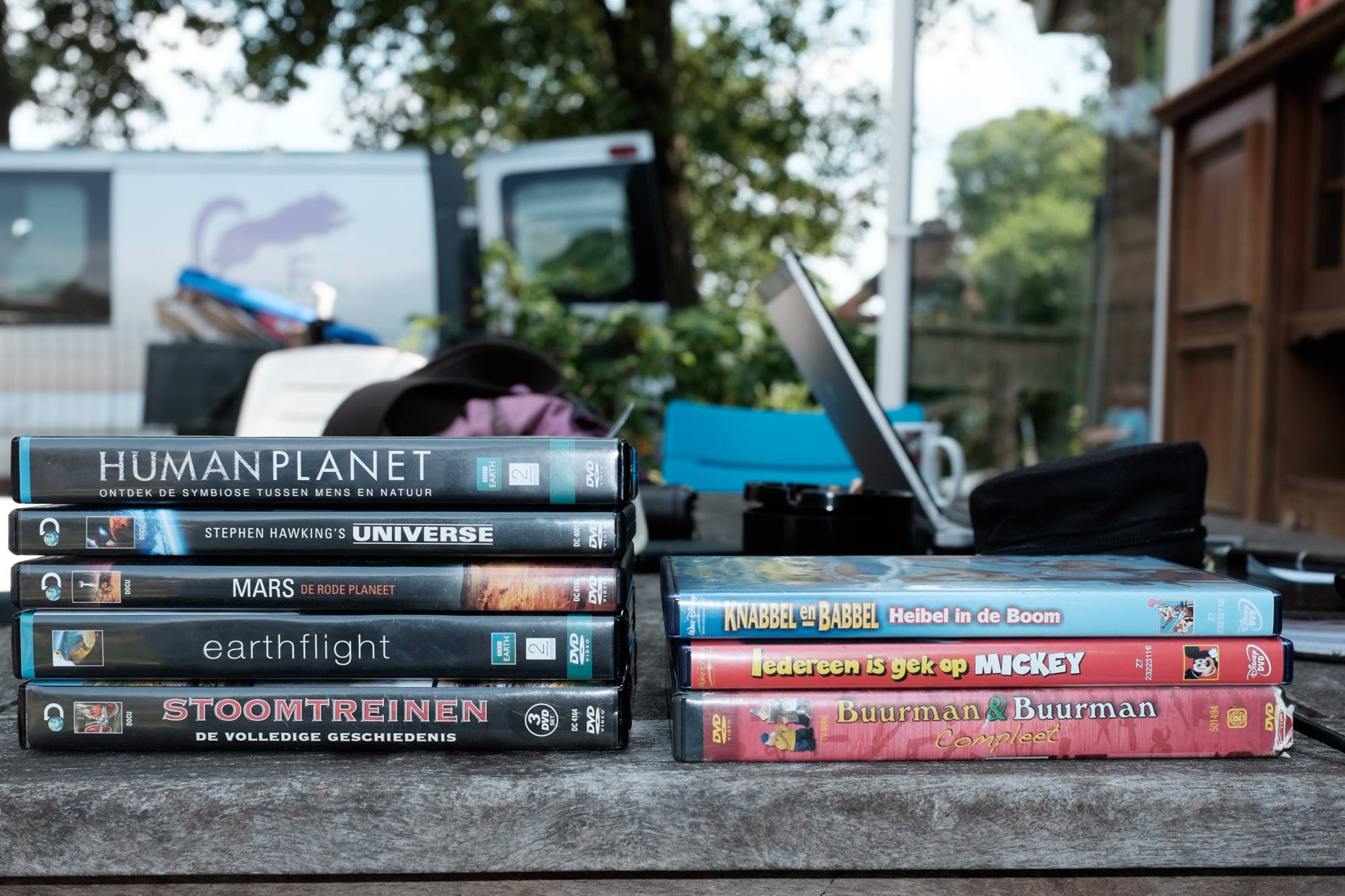 Mam! Dit is mijn stapeltje dvd's voor in de auto!