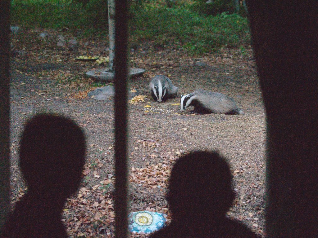 Han en Ben kijken vanuit een open keukenraam hoe wilde dassen eten. Bijzonder, bijzonder.