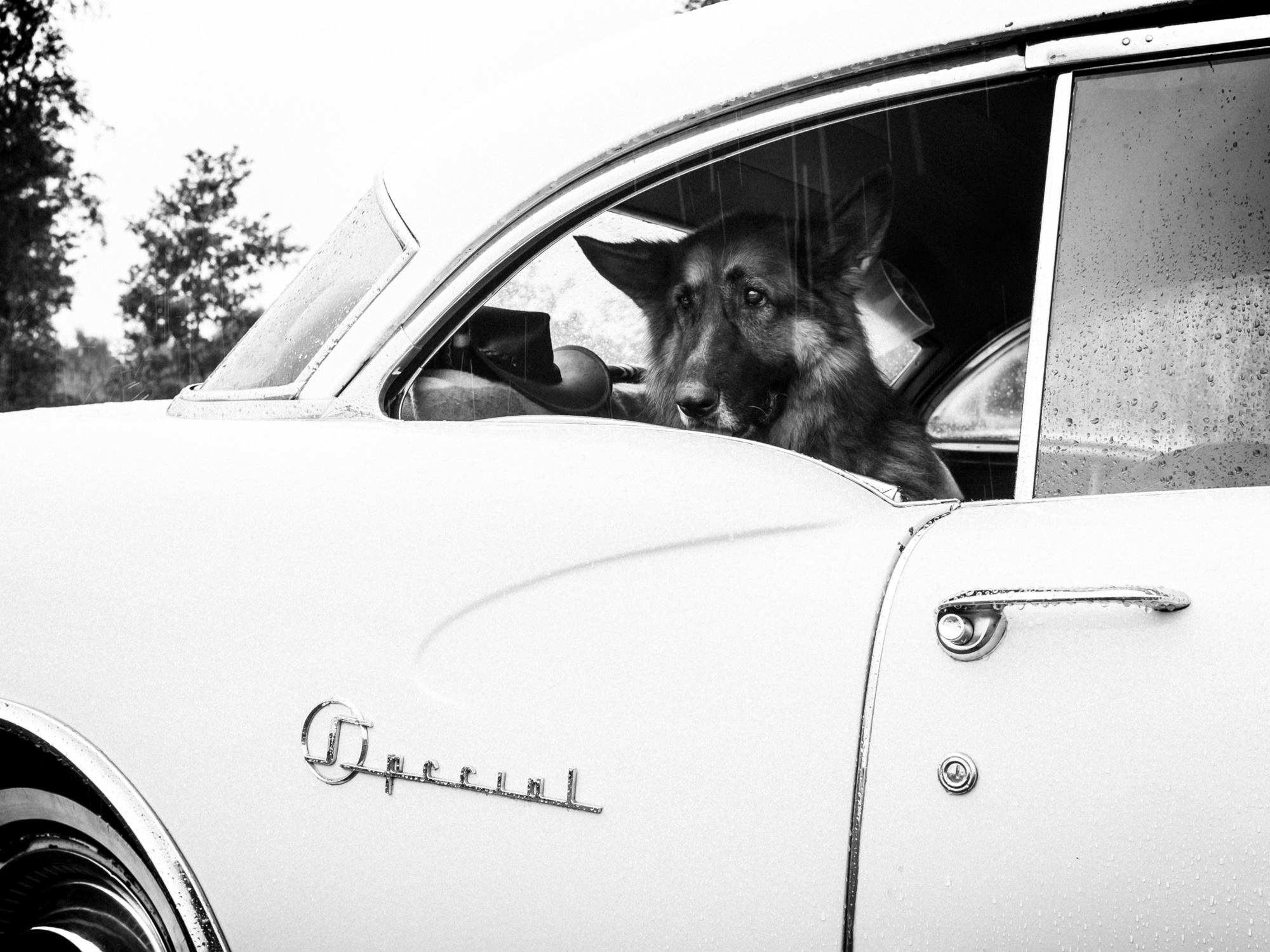De 22e oldtimerdag Ruinerwold was de eerste waarbij ook het publiek watergekoeld was;we hebben behoorlijk wat regen gehad. Goed nieuws is dat het allemaal viel nadat Han, Ben en ik onze tourrit op de tractor (cabrio!) achter de rug hadden. 't Was onze zesde keer, en ook al had Han 148 graden koorts;thuisblijven was geen optie. We hebben (honden)weer genoten!