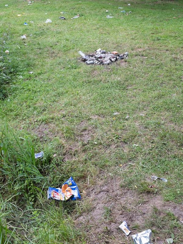 Ochtendwandeling bij de Engelgaarde. Het is duidelijk;de vakantie is begonnen: 's Nachts is het er een Sodom en Gomorra, en overdag ziet er inmiddels uit zoals op de foto's. Ik kan niet wachten op 'het zwavel en het vuur'.