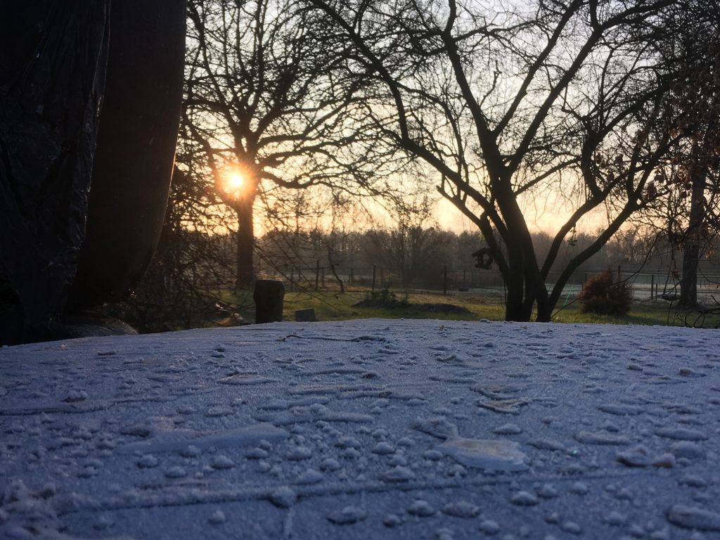 IJs op de hooibalen. Ik vind het een lekker frisse ochtend.