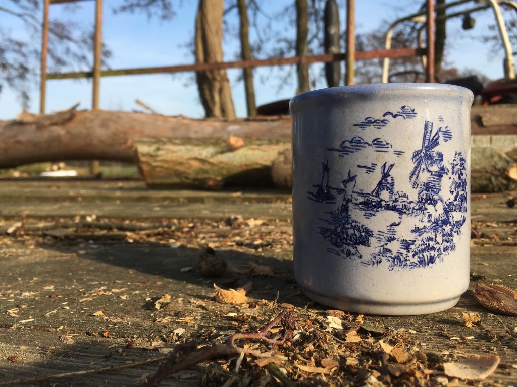 Een nieuw favoriet koffiekopje. De vorige doet het nog hoor! Ik wissel af. Wat me in deze mok aanspreekt zijn de molentjes;daar loop ik graag mee. En ze heeft geen oor. Hoef ik ook niet op m'n woorden te letten.
