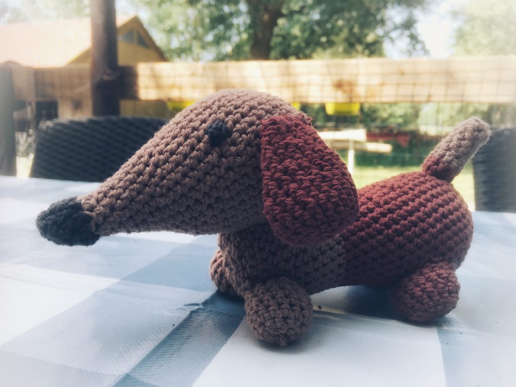 Die teckels lijken op elkaar. Dit is Floortje. Mariska maakt nu een cavia. Heel gek: Floortje kan er twaalf keer in.