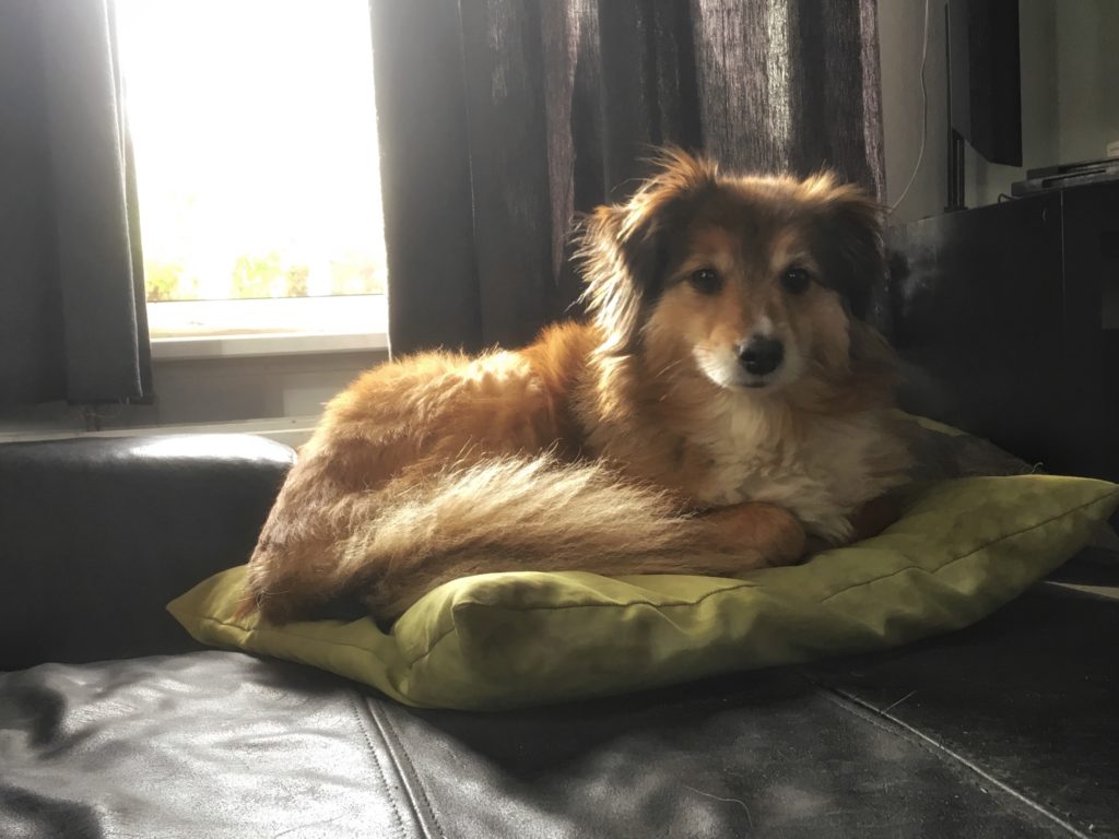 Juupke van Vatenmaecker tot Opslagbocks op haar oplaadkussen.