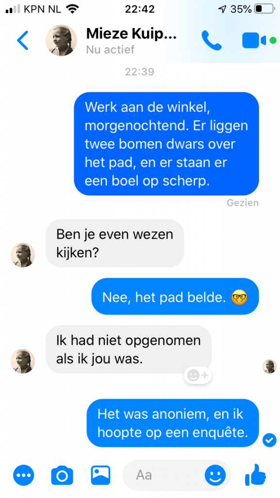Ik heb bijna een dagkalender aan mini-dialoogjes met m’n moeder..