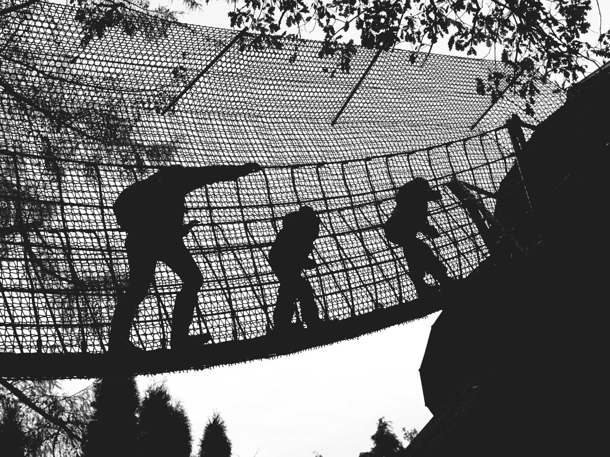 Geen scene uit een Vietnam-film, maar Mariska met Han en Ben op een touwbrug-dinges.